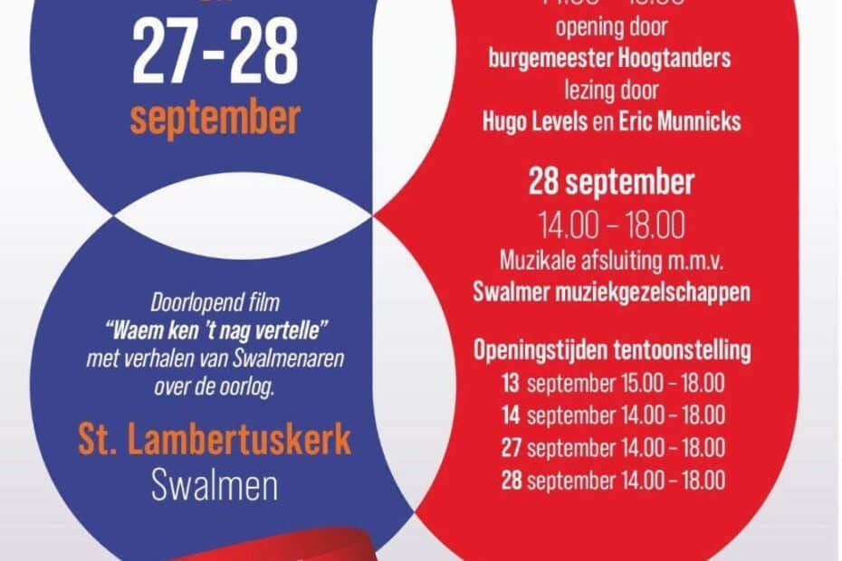Gratis filmavond als afsluiting van de herdenking van ‘80 jaar Vrijheid’ (na het Vrijheidsontbijt en de tentoonstelling in de St.Lambertuskerk) Plaats: gemeenschapshuis de Robijn, Molenweg… Lees verder »Oorlogsfilms in de Robijn
